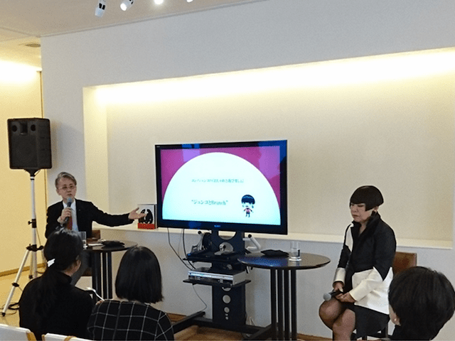 - ブランチでのトークの一コマ。コシノジュンコさんのコスチュームは仕上がったばかりの2017S/SのB&Wのジャケット、 とっても素敵です。